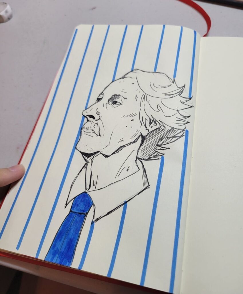 Another perk of drawing older people is that I can use ink pen without worries and it always look good! I have fun drawing this gentleman here with my ink pen casually. Not worrying about my lines being too thick because that is what you want here , you want character.